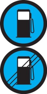 Знак “Зона дозаправки” Это знак знаком вам по прошлому уроку. Заправочную зону обозначает знак голубого или синего цвета с нарисованной на нем бензоколонкой. О выезде из зоны заправки сигнализирует аналогичный знак голубого или синего цвета, но с перечеркнутой бензоколонкой.