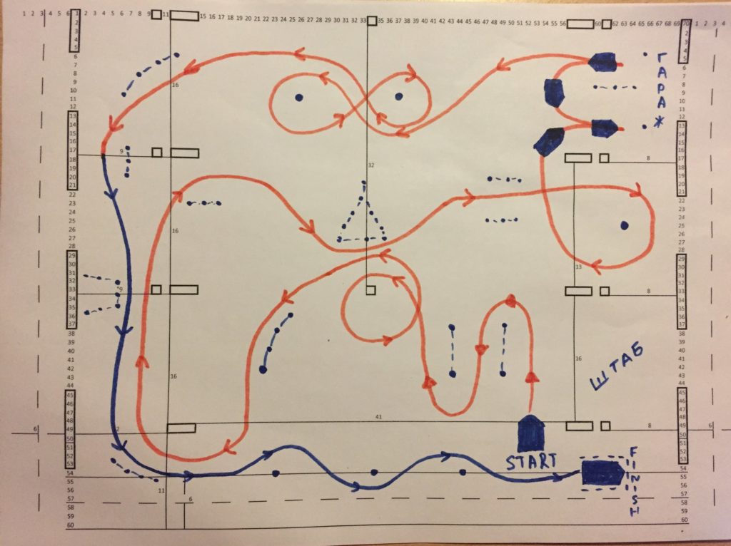 Скромную площадь парковки использовали максимально эффективно. Трасса получилась не скоростная, но очень техничная. Змейка, восьмерка, круг, прямая и даже упражнение «гараж», которое выполняется задним ходом.