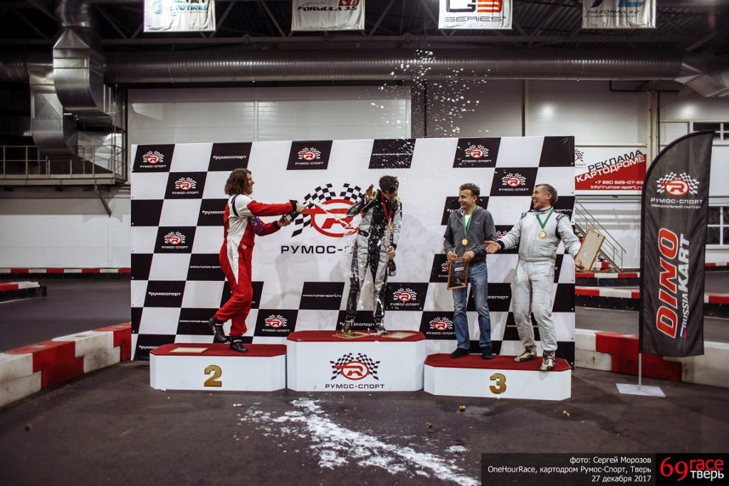 Одна из последних гонок в РУМОС-СПОРТ, под названием «OneHourRace» прошла в декабре 2017. «В квале получилось не очень хорошо, но все-таки топ 5. В лидерах были Кеша и Алексей Вдовин. Первый сменялся я, и в итоге мне досталась машина, которая подходила по пилотажу. Она не очень быстрая, но отлично проходит повороты. Поначалу я по секунде с круга привозил всем. Я сразу поймал очень мощный темп и дальше экспериментировал и смотрел, как лучше ехать. Свое лучшее время я показал за 10 минут до конца».