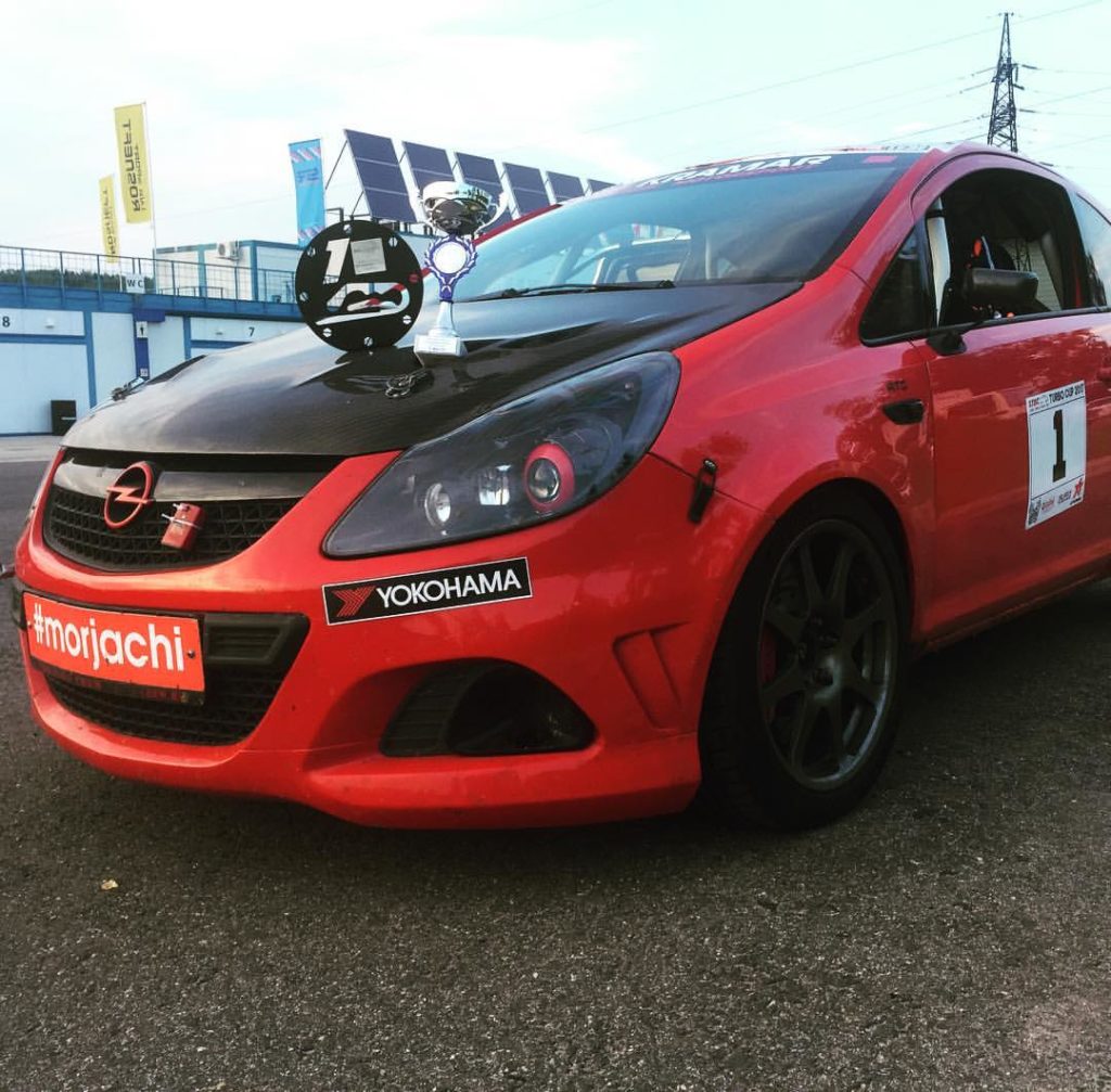 — Да, и купил прям «гонку-гонку». Готовую машину, вице-чемпион РХХЦЦ (RHHCC – Russian Hot-Hatch Club Championship, любительские соревнования на лучшее время круга, — прим. авт.). Готовая полностью к тайм-аттаку. В 550 тысяч рублей мне обошлась OpelCorsa OPC. Каркаса не было, первый год я ездил без него. Но, стояла подвеска KW competition. Мотор был доработан, очень надёжный, кстати. Классный мотор у ребят получилось собрать — 240 лошадей на замерах.