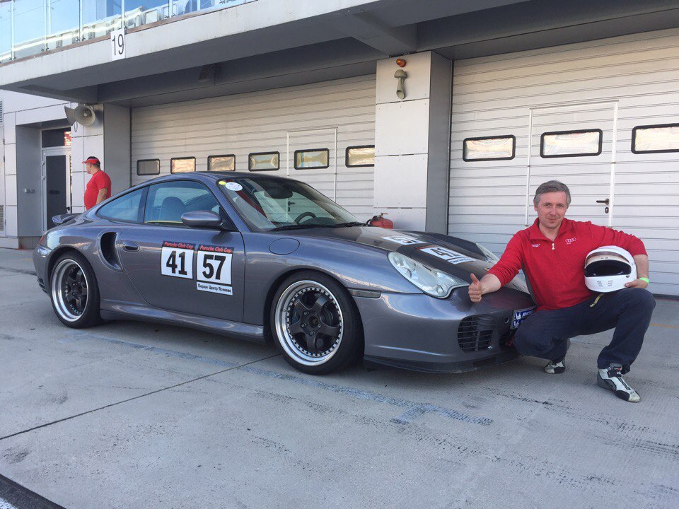 — Да, на машине друга. Он мне сделал такое предложение, от которого нельзя было отказаться. На одной машине, заявились вдвоём в тайм-аттак, гонка на время. Я был первый раз за рулём его машины на треке на котором уже ездил, а он был за рулём своей машины но первый раз на этом треке. Я поначалу боялся, переживал. 600 лошадиных сил — мощный аппарат. Но потом, привык и в конце ехал, уже практически ничего не опасаясь. Был правда неприятный момент, когда вскипела тормозная жижа и пропали тормоза в конце длинного прямика, когда скорость была 200+… Но их хватило как-то оттормозиться, как-то повернуть, доехать круг уже без тормозов, заехать в бокс. Но седых волос – добавило.
